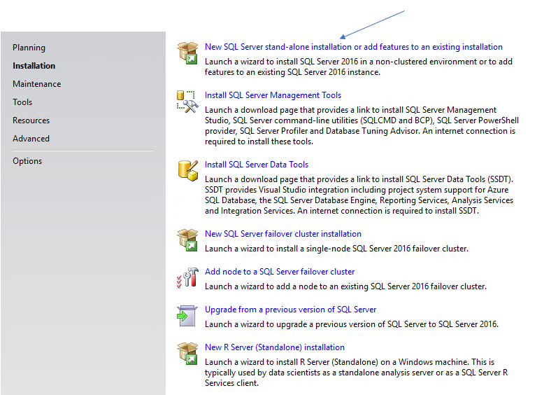 I select “New SQL Server stand-alone installation…..“