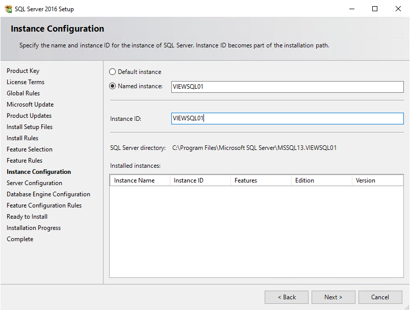Using a named instance was, in hindsight, an error. This caused errors when I later set up the Availability groups. For future reference I should have used Default Instance, Next…
