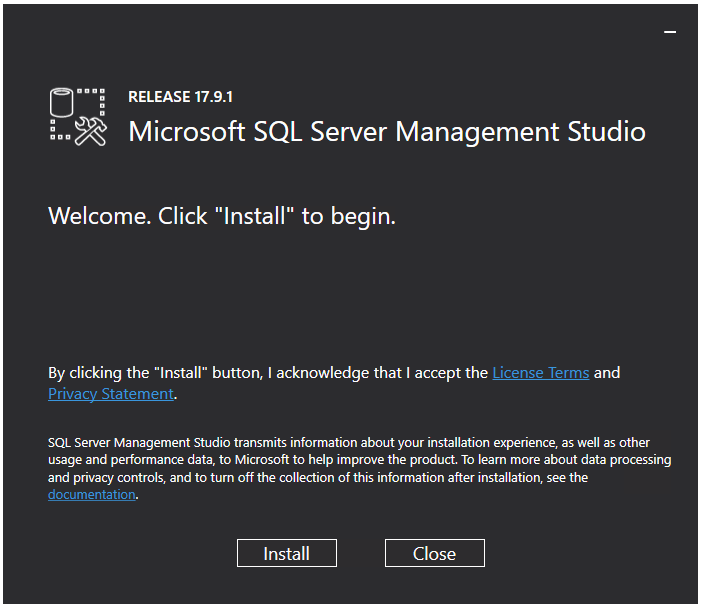 - Install SQL Server Management Studio