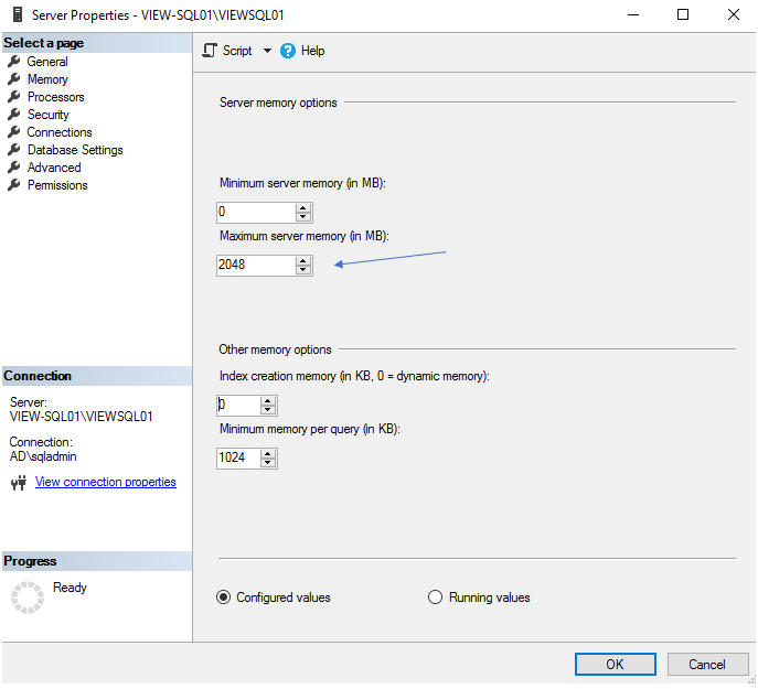 Adjust SQL Server memory options (Usage)