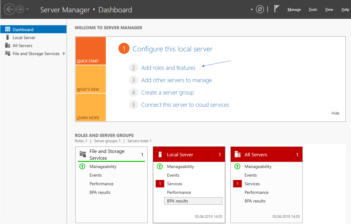 After the roles are added to the server, I proceed with promoting this server to ad domain controller