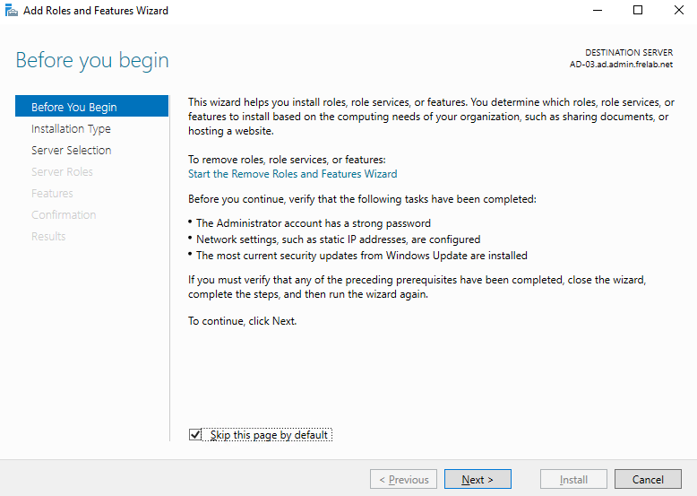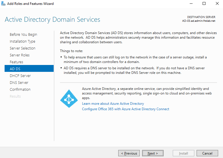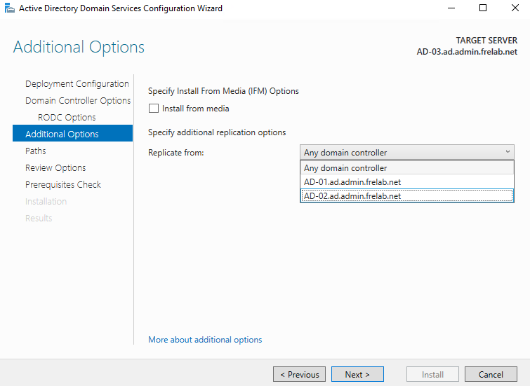 Afterwords I verify communication with existing ad-servers, join the server to the domain and reboot.