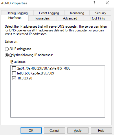 I will not be using IPv6, deselect these addresses for the DNS listener.