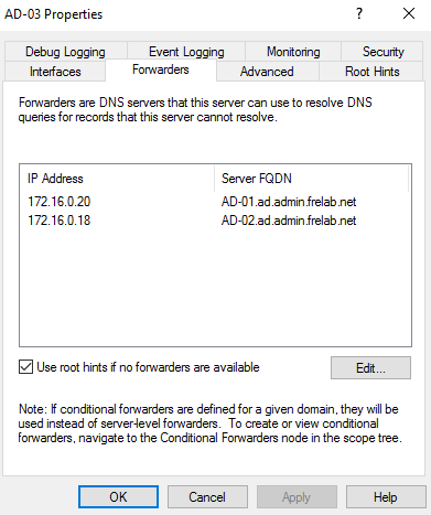 After the domain controller is promoted, I continue with configuring the DNS server on my new DC. I open DNS manager and select Properties.