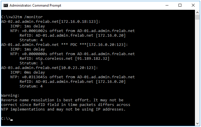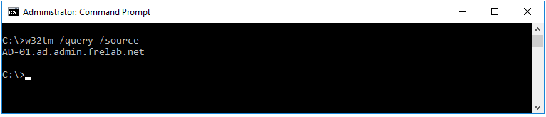 As we can see from the prompt below, the time source is my PDC: AD-01.ad.admin.frelab.net