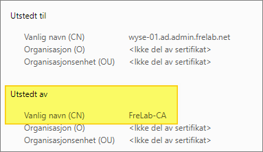 After a restart, I verify that the certificate is issued by the Domain CA and valid.
