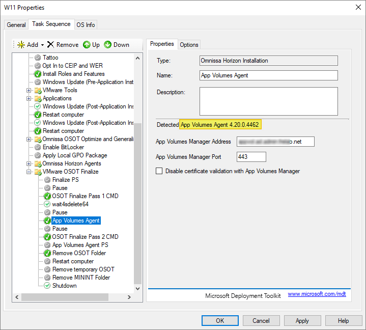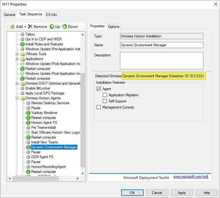As I’ve gone over to using MDT to create Horizon templates, described here: Automating Template Creation & Maintenance, I will update the Omnissa Windows Agents in the Deployment Share, and run through the task sequence to create a new template.