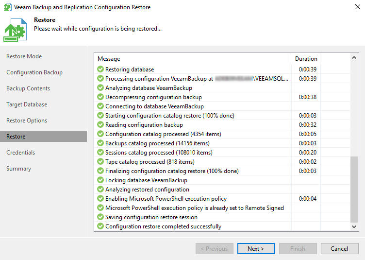 Once the Configuration restore is done, I click Finish to open up Veeam B&R Console. I re-enable the backup jobs and run a backup job to verify the functionality.