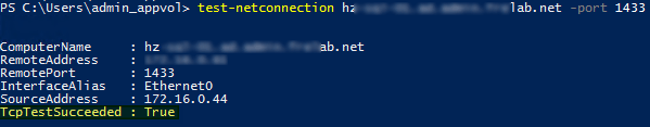 A final preparation is to verify that the SQL port is open between the new App Volumes server and the SQL server