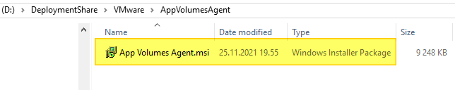 Next, I copy the new VMware App Volumes Agent msi-file to the “AppVolumesAgent” folder in the Deployment Share. It is important to make sure that the executable isn’t blocked by Windows Security, therefore I right-click the msi-file, select Properties and tick the Unblock box, if it exists. This also applies to the other executable files under the “D:\DeploymentShare\VMware” folder.