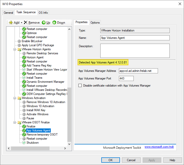 Finally, I update the deployment Share, before I run through a task sequence and push the new template to my desktop pool. In scenarios with persistent desktop pools, I would advice using “silent install” upgrades, as described by VMware here: Upgrade App Volumes Agent Silently