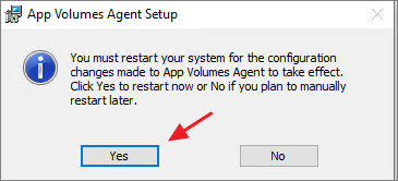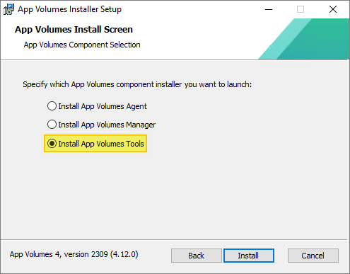 In the App Volumes Install Screen, I select “Install App Volumes Agent”, Install…