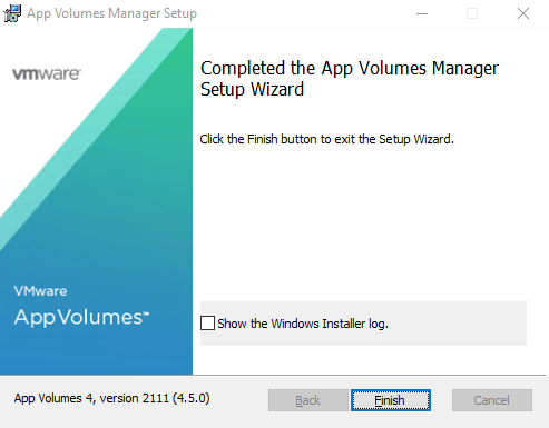 In the App Volumes Install Screen, I select “Install App Volumes Manager“, Install…