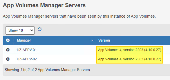 As I have multiple App Volumes Managers I repeat the procedure above with the other AVM. Once done I check the status in App Volumes Manager Console