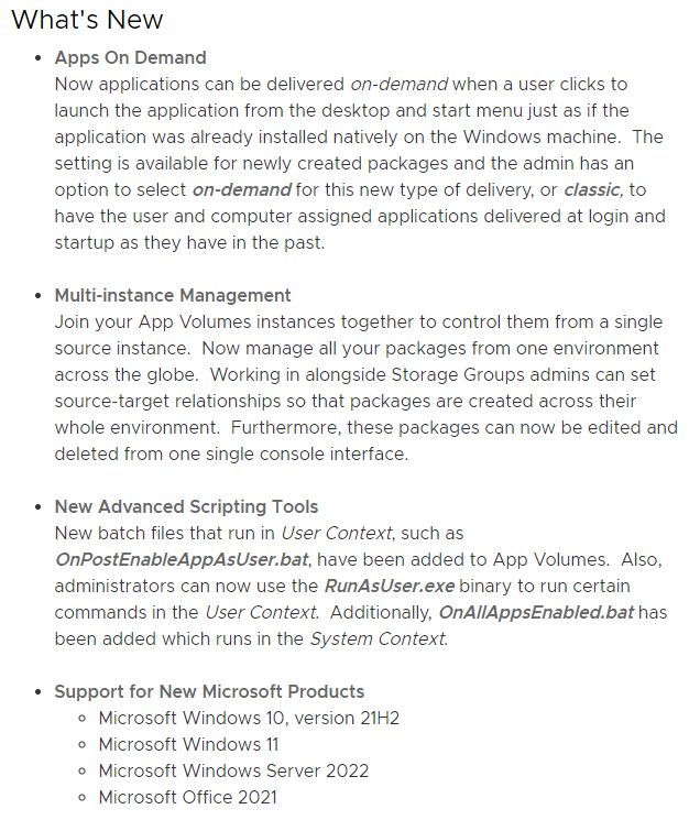 Welcome to my VMware App Volumes series. The new version of VMware App Volumes, 2111, was GA on November 30th 2021, with the version being 4.5.0.77. This version includes new features as Apps On Demand, Multi-instance Management and New Advanced Scripting Tools, as well as bug fixes etc. The Release Notes can be reviewed here: VMware App Volumes 4, version 2111.