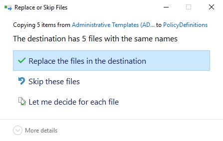 Next, I copy and replace all the admx-files to my Central Store location, in my LAB this will be: “C:WindowsSYSVOLsysvolad.admin.frelab.netPoliciesPolicyDefinitions”