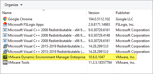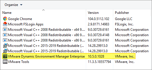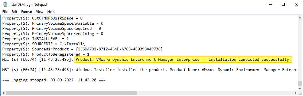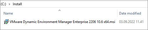 msiexec.exe /i "VMware Dynamic Environment Manager Enterprise 2206 10.6 x64.msi" /qn ADDLOCAL="FlexManagementConsole" /l* InstallDEM.log