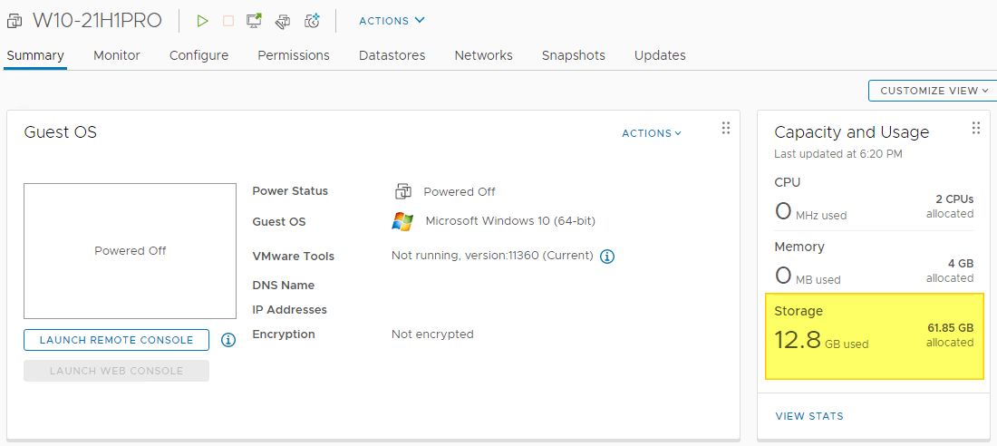 After the shrinking-operation, the VM have a much smaller footprint, only 12,8 GB, which is quite acceptable.