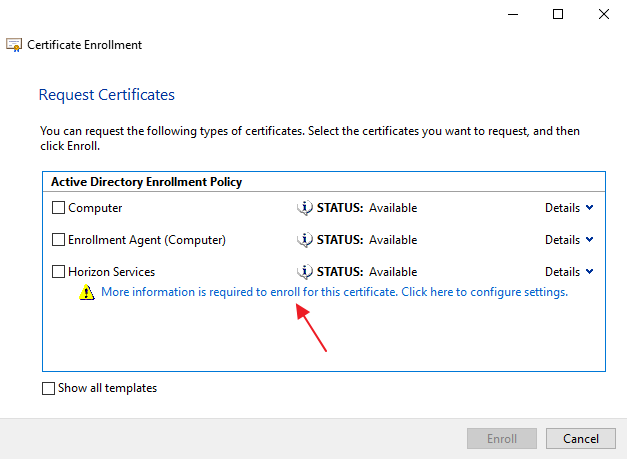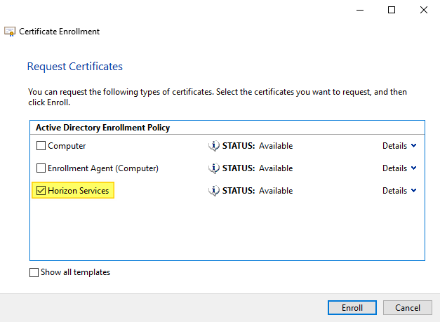 The VMware Horizon Desktop Recording Server comes with a self-signed certificate when you install it. This is quite easy to change to a Domain CA signed certificate. As I already have a template which I used with my VMware Connection servers, I will be reusing this for the recording server. The documentation from VMware is informative about the certificate replacing procedure. Below I will show how I did this in my setup.