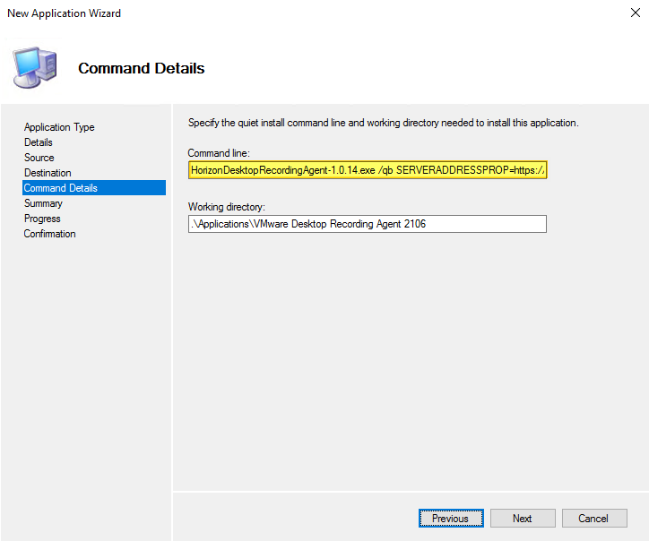 As the VMware Desktop Recording Agent needs the Horizon Agent to be installed beforehand, I put the installation after the Horizon Agent in my task sequence.