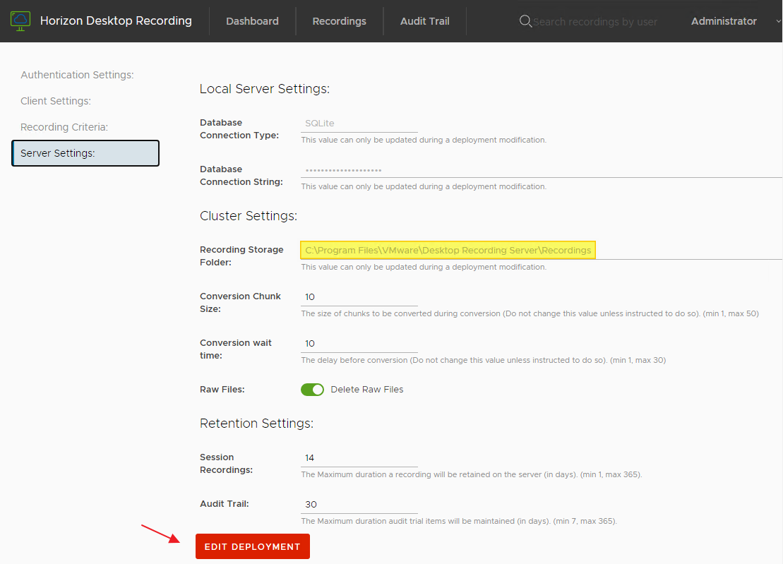 Under “Server Settings”, I click “EDIT DEPLOYMENT“…