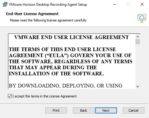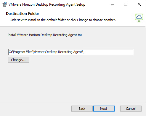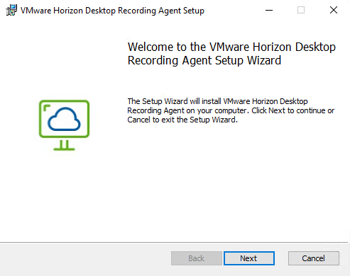 To do a manual Desktop Recording Agent installation, I first download the executable from MyVMware. Next, I launch the VMware Horizon Desktop Recording Agent Setup Wizard, Next…