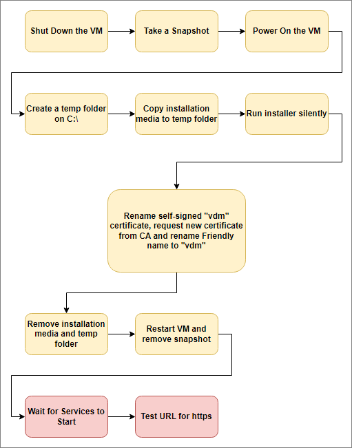 Write-Host "The installation failed, revert to snapshot, remediate error and try again" -ForegroundColor Red