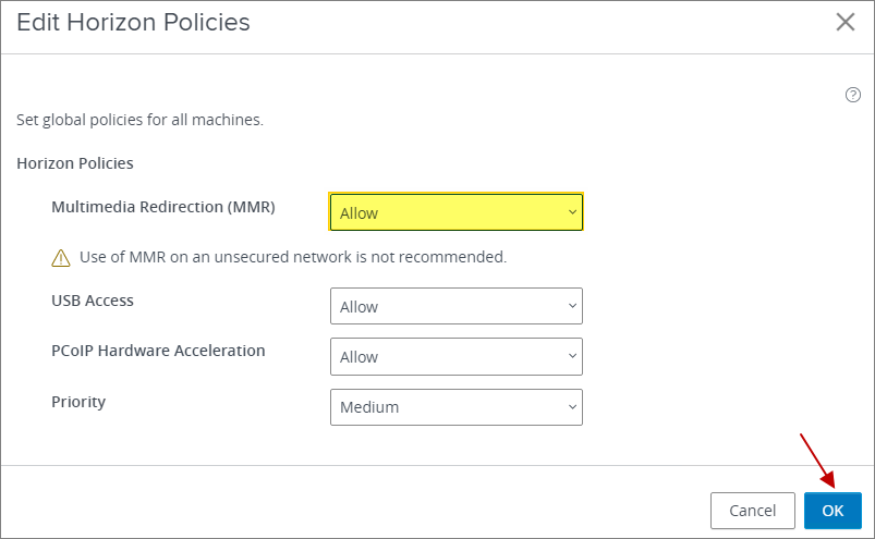 The actual enabling of Multi Media Redirection is done from within the Horizon Administrator console.