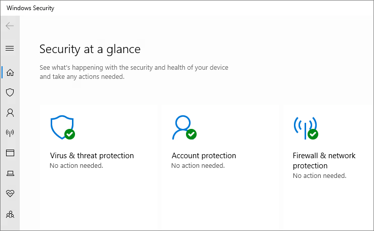 When I log in and test, I can now open the Windows Security page and validate status.