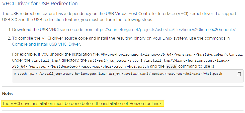 As I don’t plan to be using USB redirection, this point don’t apply to me. BUT, for any of you who reads this post, and plan to use USB redirection, be aware that the VHCI Driver for USB redirection has to be installed before the VMware Horizon for Linux agent. A detailed description of the VHCI driver install can be found in VMware’s documentation here: System Requirements For Horizon Agent for Linux