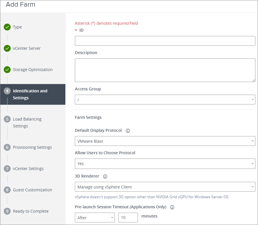 Before I login to VMware Horizon Admin Console and start the Add Farm Pool Wizard, I acknowledge the prerequisites for Desktop Farm creation. For this session it will be An Automated Desktop Pool.
