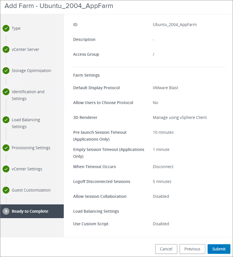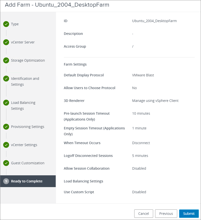 I complete the New Desktop Farm wizard, Submit…