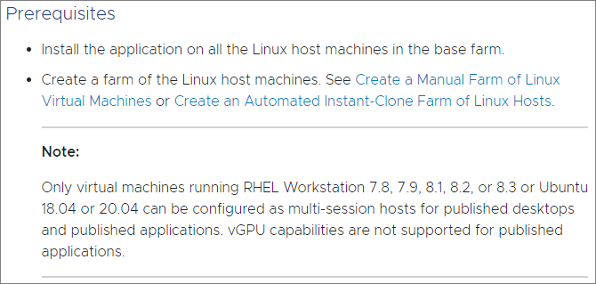 VMware’s official documentation: Setting Up Linux Desktops in Horizon