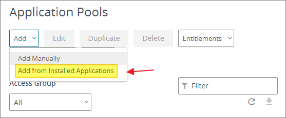 - Create Application Pool Global Entitlement