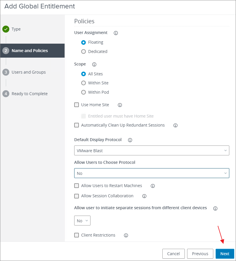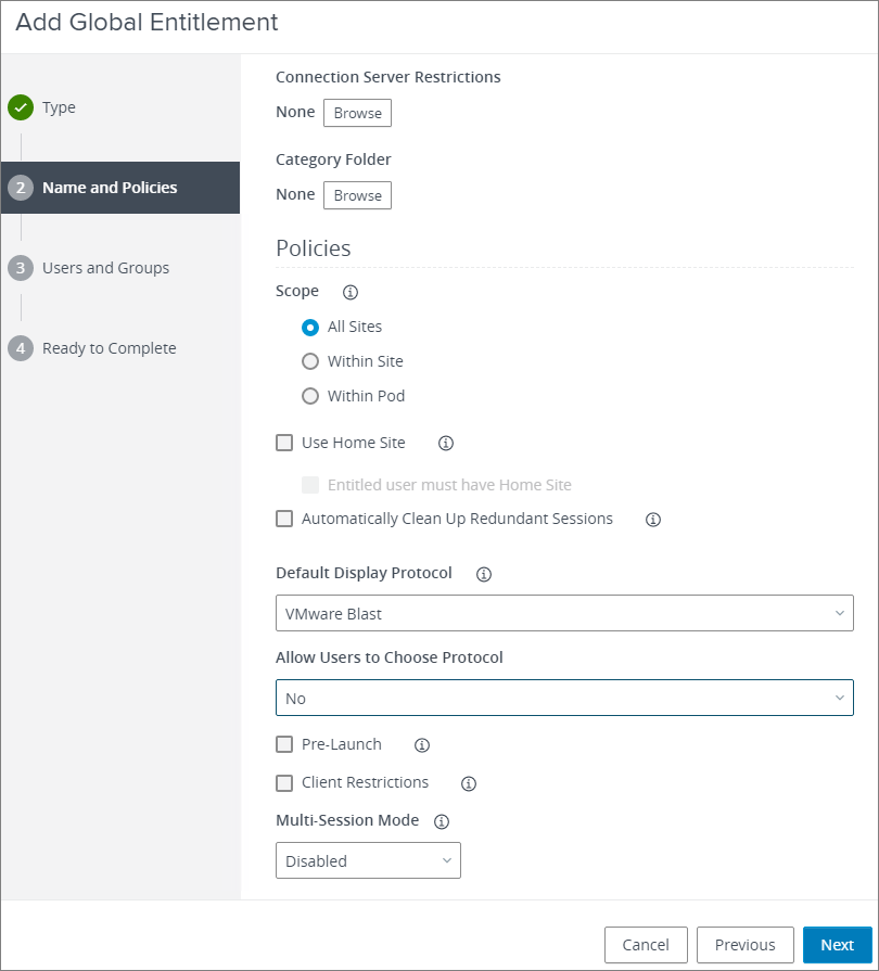 - Create Desktop Pool Global Entitlement