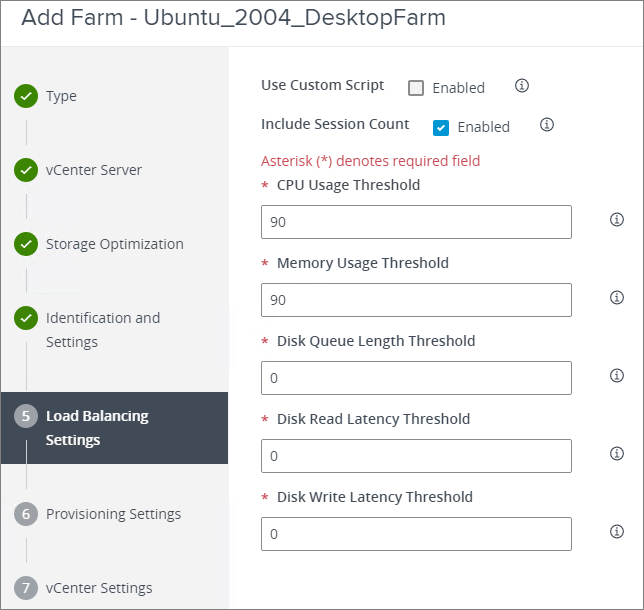 In the Load Balancing section, I enter the proper Threshold values, see the documentation for more info, Next…