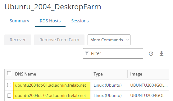 Once the provisioning is done, I can verify that I have two Ubuntu 20.04 Instant Clones ready in my farm to host the Application Pools I will be creating below.