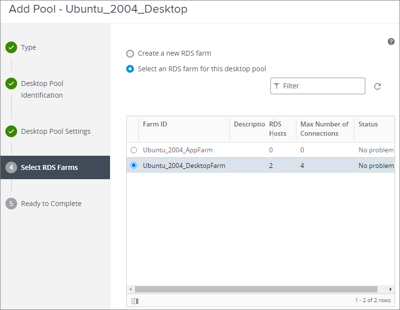 I login to VMware Horizon Admin Console and click Add to create an RDS Desktop Pool…