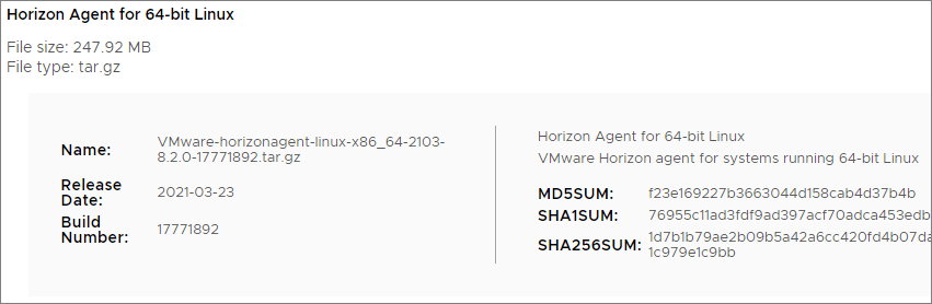Now I can download the correct version of VMware Horizon Agent for Linux from My VMware