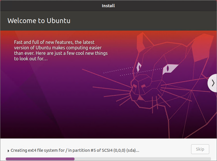 The installation of Ubuntu Desktop 20.04 starts…