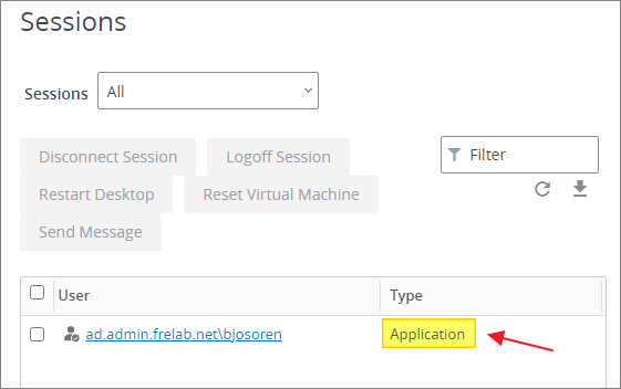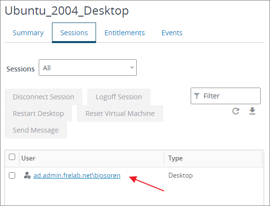 In VMware Horizon Administrator I verify that I have an active session in my RDS Desktop Pool.