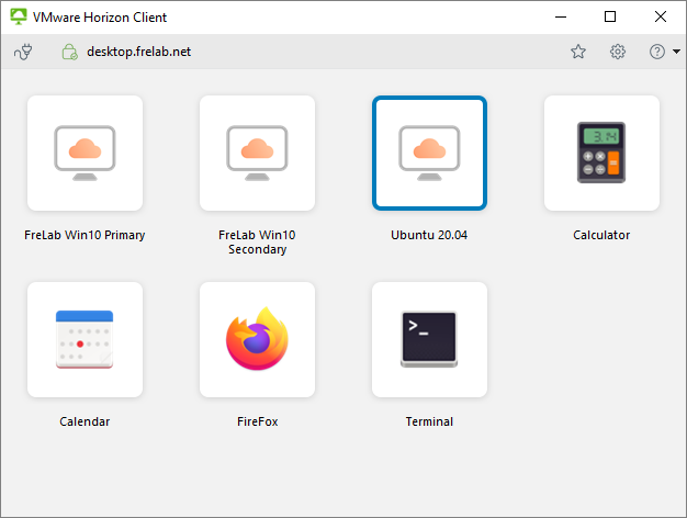 When I launch my VMware Horizon Client I can see that I have a the Ubuntu 20.04 desktop available for my test-user. I launch this to verify that I can log in using SSO.