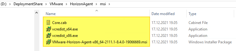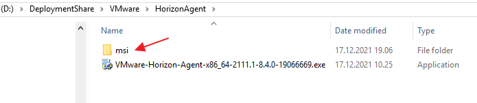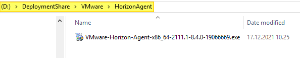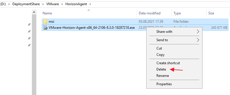 I close the Deployment Workbench MMC before I continue. To update the Horizon Agent in the Deployment Share I will first delete the existing agent and msi-folder from the Deployment Share