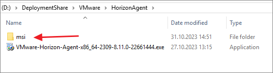 I close the Deployment Workbench MMC before I continue. To update the Horizon Agent in the Deployment Share I will first delete the existing agent and msi-folder from the Deployment Share