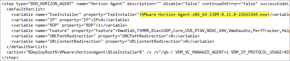 I locate the “Horizon Agent” step and adjust the name of the “ExeInstaller” to match the executable I copied in earlier