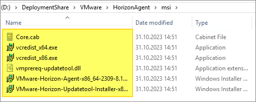 I close the Deployment Workbench MMC before I continue. To update the Horizon Agent in the Deployment Share I will first delete the existing agent and msi-folder from the Deployment Share