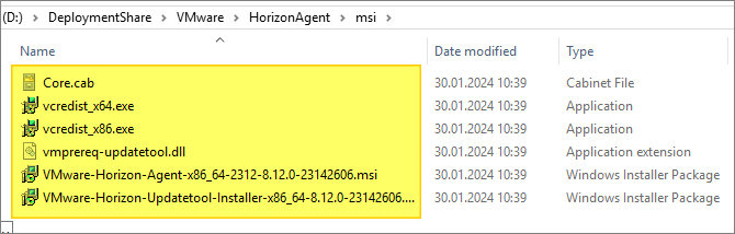 I close the Deployment Workbench MMC before I continue. To update the Horizon Agent in the Deployment Share I will first delete the existing agent and msi-folder from the Deployment Share