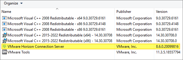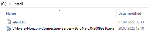 VMware-Horizon-Connection-Server-x86_64-8.6.0-20099816.exe /s /v"/qn VDM_SERVER_INSTANCE_TYPE=5 VDM_INITIAL_ADMIN_SID=S-1-5-32-544"