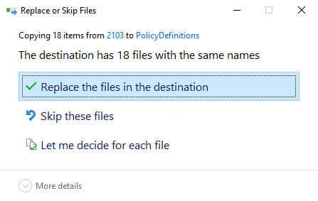 Next, I copy and replace the adml-files from the en-US folder to “C:\Windows\SYSVOL\sysvol\ad.admin.frelab.net\Policies\PolicyDefinitions\en-US”