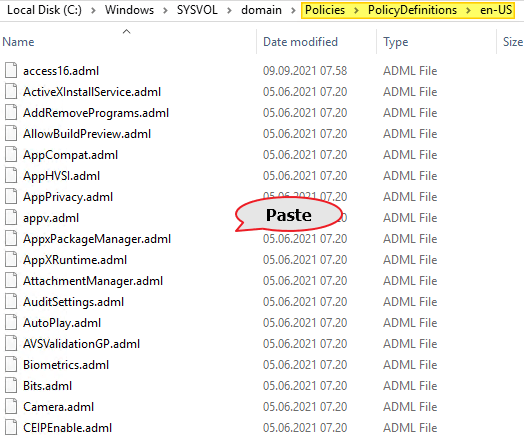 Next, I copy and replace the adml-files from the en-US folder to PolicyDefinitions\en-US” folder. I replace the existing files.